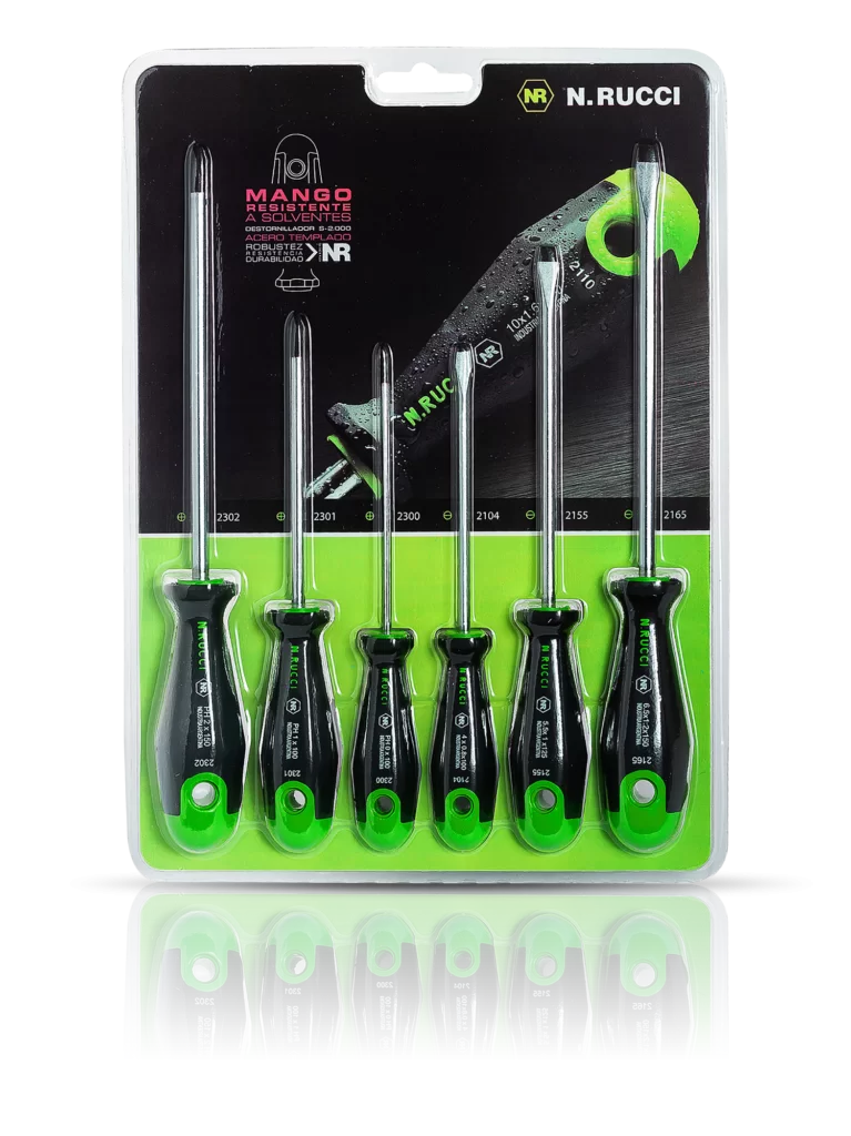 El set de destornilladores Rucci es la combinación perfecta de fuerza y precisión para el taller mecánico o industrial. Este conjunto de fabricación nacional destaca por la alta calidad de sus varillas de acero de aleación y sus mangos ergonómicos, diseñados para transmitir el máximo torque con el menor esfuerzo manual.