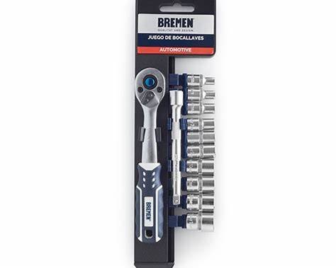 El juego de bocallaves Bremen 6656 es un set portátil de calidad profesional, diseñado para mecánicos y técnicos que necesitan una solución compacta y resistente. Fabricado en acero Cromo Vanadio (Cr-V), este kit garantiza máxima durabilidad y resistencia al torque, siendo ideal para trabajos de mantenimiento automotriz e industrial.
