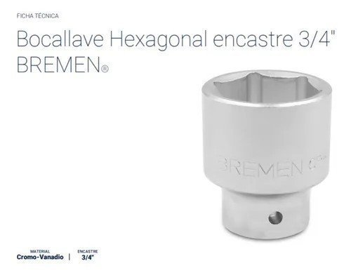 Bocallave Hexagonal 30mm Encastre 3/4″ Bremen – Código: 3783