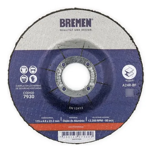 - Tipo de Disco: Centro deprimido para desbaste.