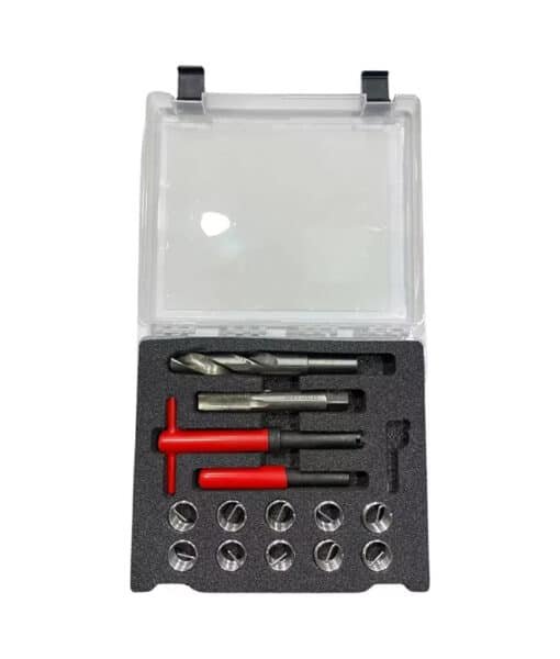 El kit Ruhlmann RU43035 es la solución profesional definitiva para recuperar roscas barridas, dañadas o desgastadas en blocks de motor, tapas de cilindros y componentes de aluminio o fundición. Este sistema de insertos de acero inoxidable permite devolverle al alojamiento su medida original (M10 x 1.5), creando una rosca incluso más fuerte y resistente al desgaste que la de fábrica.