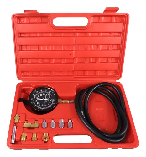 Kit de diagnóstico profesional diseñado para medir con exactitud la presión de aceite en motores nafteros y diesel. Es una herramienta esencial para detectar fallas en la bomba de aceite, interruptores de presión (bulbos) defectuosos, conductos obstruidos o desgaste excesivo en los cojinetes del motor.