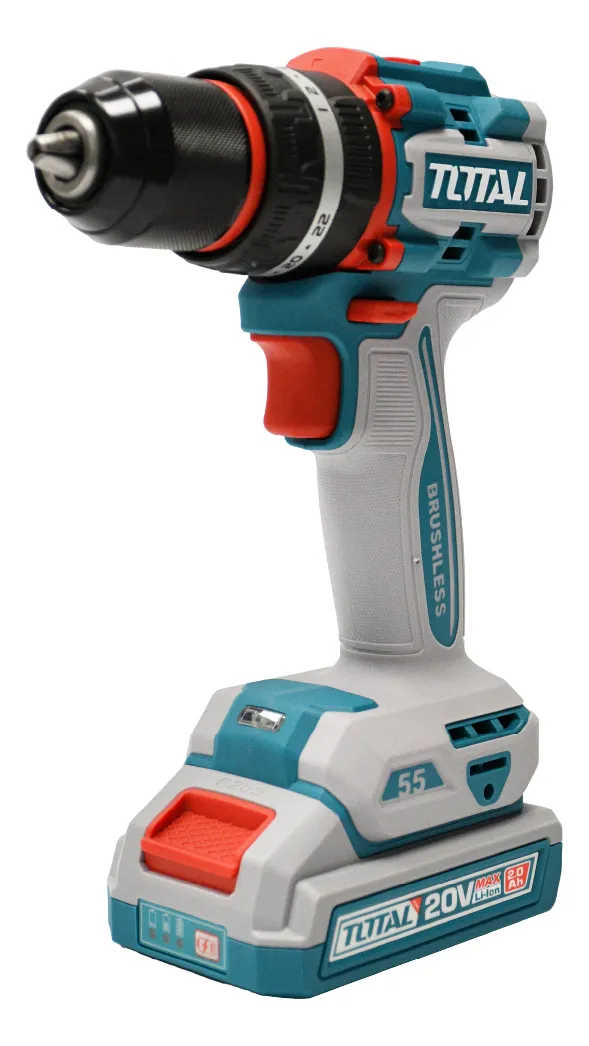El Taladro Percutor Total de 55 Nm es una herramienta de alto rendimiento diseñada para perforación y atornillado exigente en mampostería, metal y madera. Equipado con tecnología de motor sin carbones (Brushless), ofrece mayor autonomía, más potencia y una vida útil prolongada sin mantenimiento.